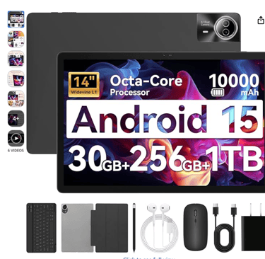 All-Day 8000mAh Battery & Type-C Charging: Powered by a robust 8000mAh battery, this tablet supports extended use for work, entertainment, and travel. Enjoy convenient USB-C charging and intelligent power management from Android 15 for optimal endurance