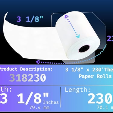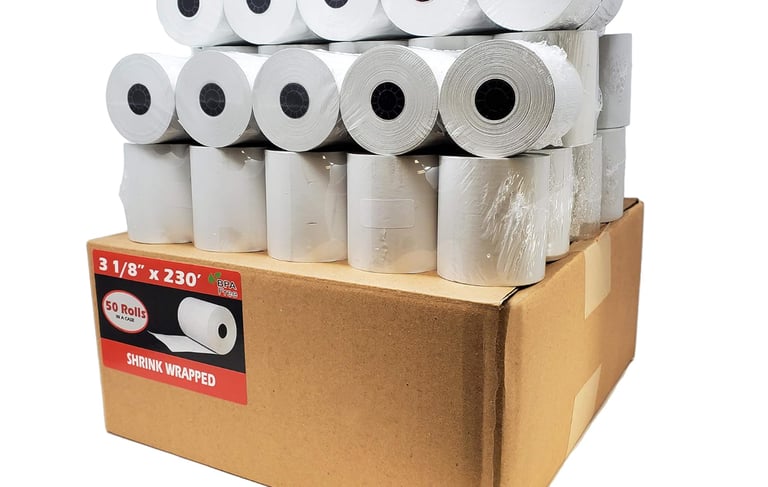 (50 Rolls) 3 1/8 x 230 Thermal Paper Receipt Rolls (55 GSM Premium Quality German Paper) Fits All POS Cash Registers BPA Free - BuyRegisterRolls