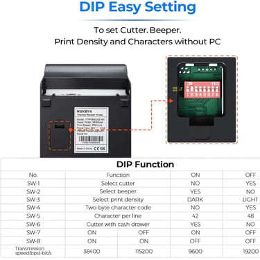 -The only thing that didn't work out of the box was the auto-cut feature. There is a DIP switch under the printer that allows the user to turn on and off the auto-cut feature, however my unit doesn't cut regardless of the DIP switch, waiting on the seller to get back to me on that.